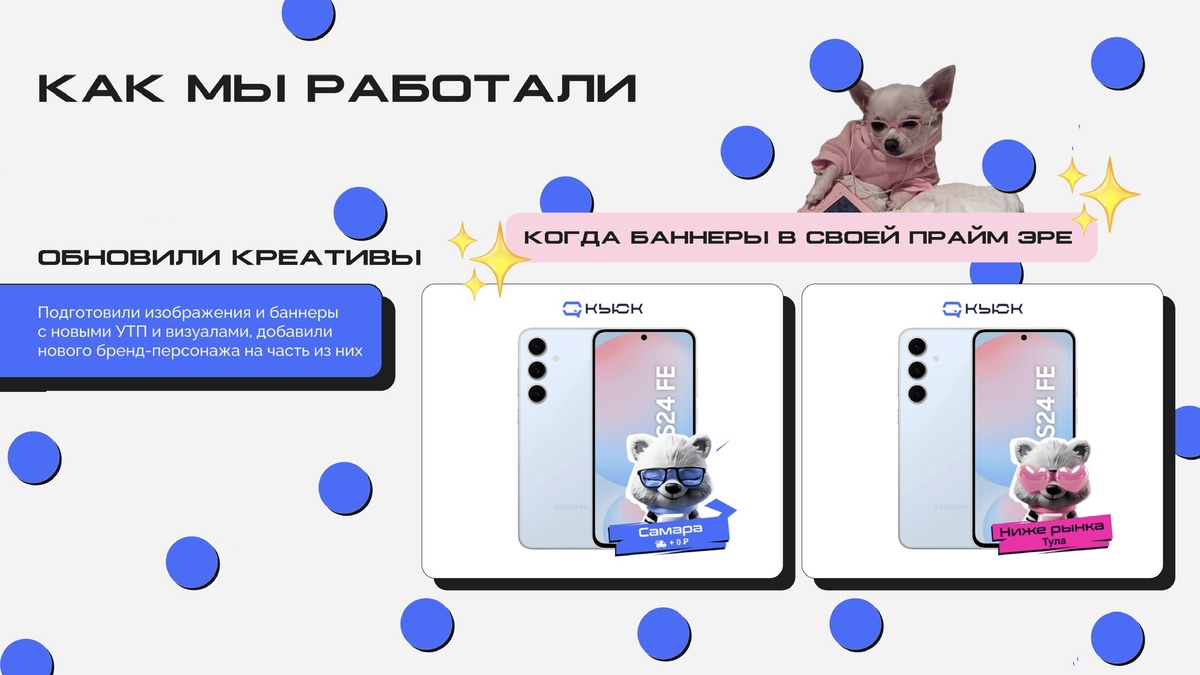 Чтобы локализация отражалась не только в тексте, мы подготовили баннеры с новыми визуалами, УТП и названиями городов, в которых они будут показываться. Потому что человек в первую очередь обращает внимание на изображение и, увидев нужный город, с большей вероятностью изучит объявление.