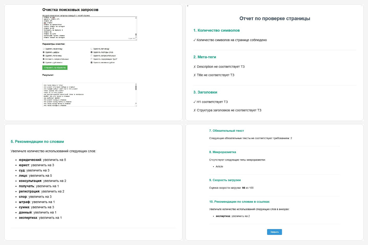- начали собирать внутренние продукты, которые разгружают команду и повышают качество сервиса (собственные инструменты для семантики, проверки соответствия ТЗ, внутреннего аудита сайтов, а также решения, которые помогают ускорять подготовку коммерческих предложений и улучшать клиентский сервис с помощью AI).