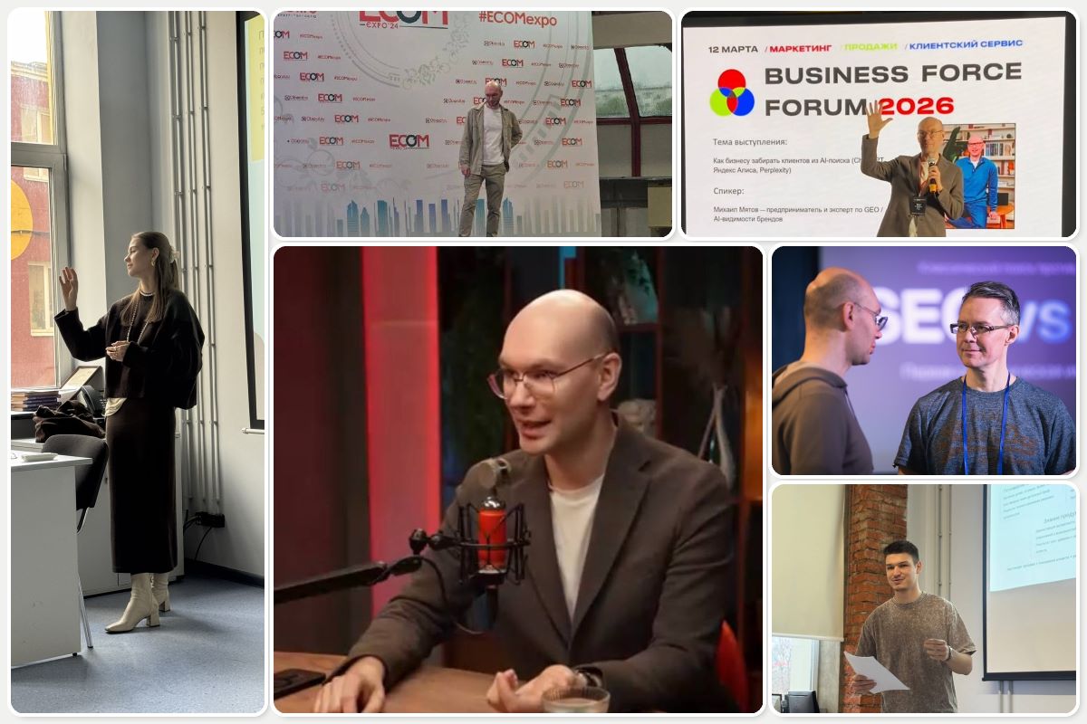 - выступал на Business Force Forum, Сколково, Ecom с прикладными кейсами роста заявок по SEO и GEO,