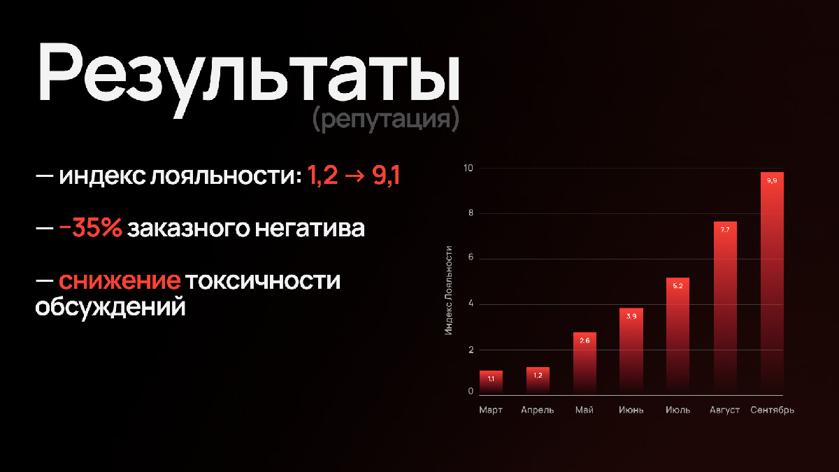 - единая картина репутации отсутствовала — компания не понимала, где именно теряет лояльность аудитории.