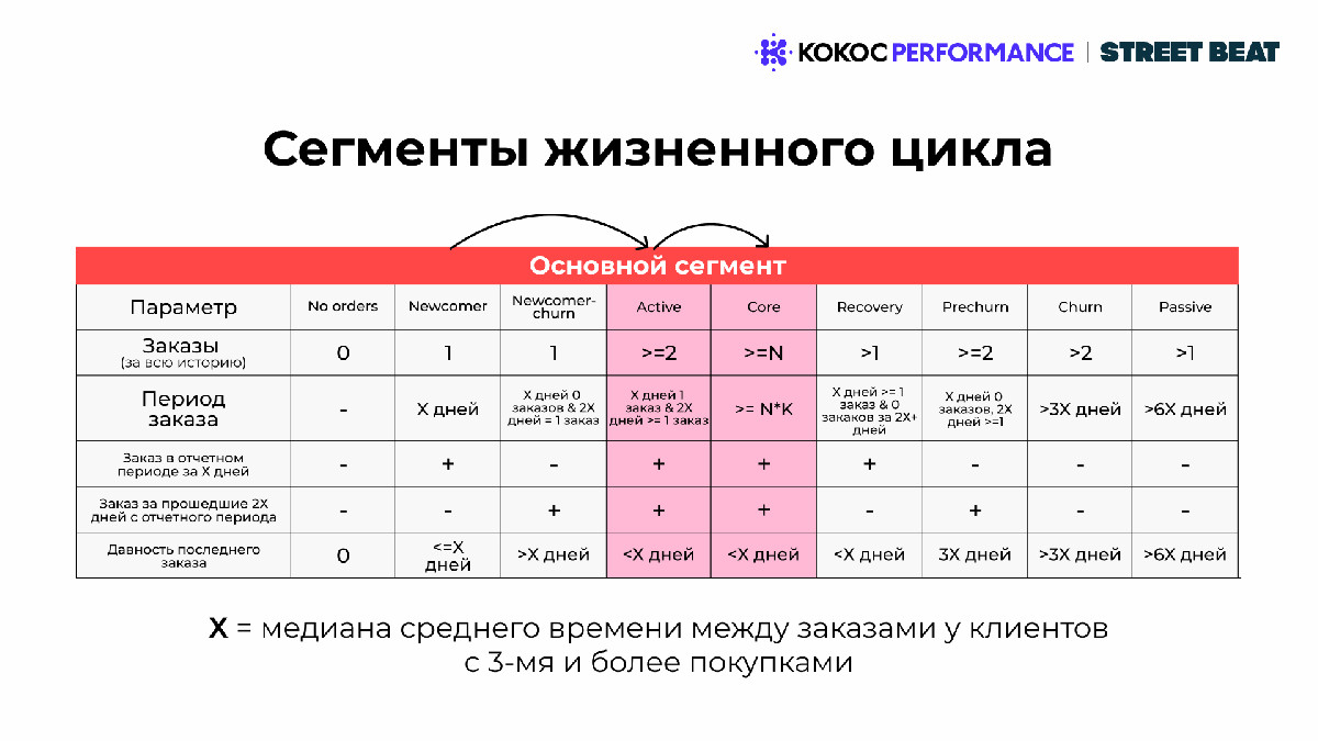 - Core — активные клиенты, достигшие эффективной частоты заказов.