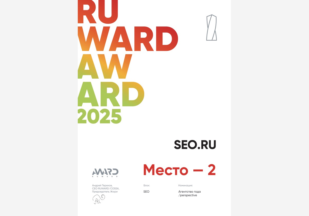 2 место в премии Ruward Award 2025 в номинации SEO / Агентство года / Perspective
