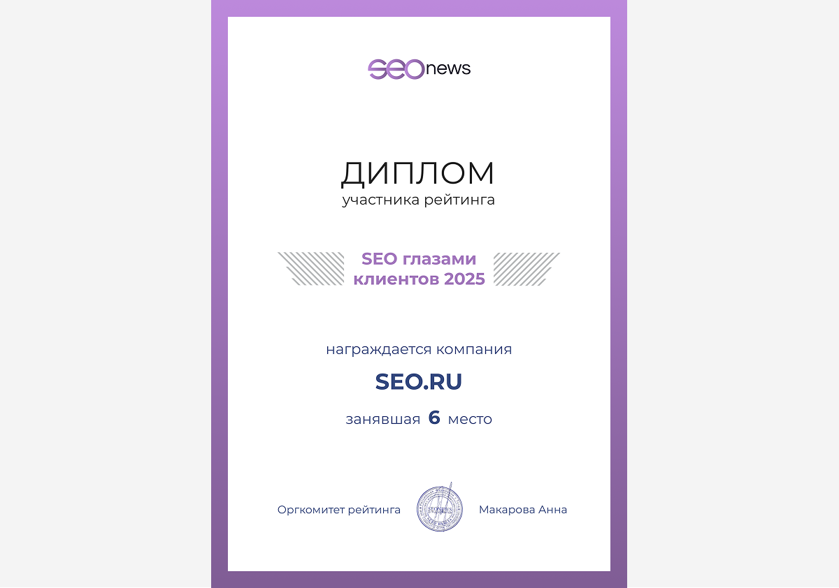 - 6 место в Рейтинге SEO глазами Клиентов 2025;