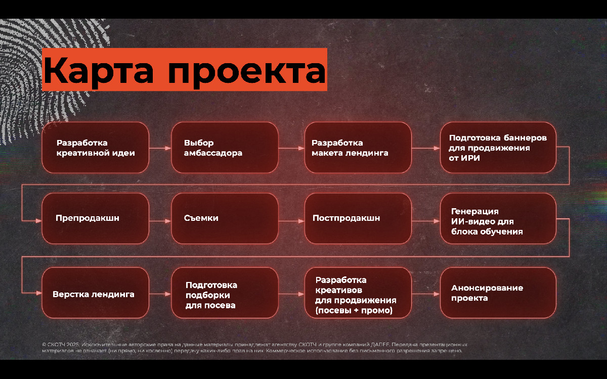 Цель: Снизить риск финансового мошенничества через обучение. Создать виральный образовательный продукт, который научит аудиторию критическому мышлению и распознаванию цифровых манипуляций.