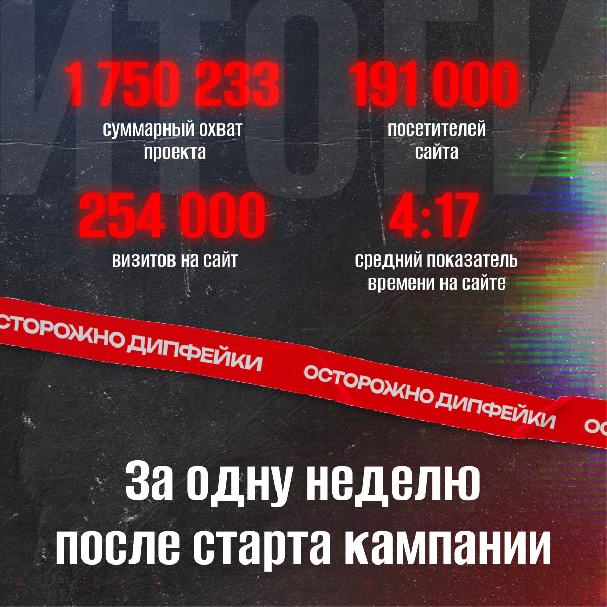 За одну неделю после старта кампании нам удалось получить: 40% от итоговых охватов и 190 тысяч пользователей на сайт!