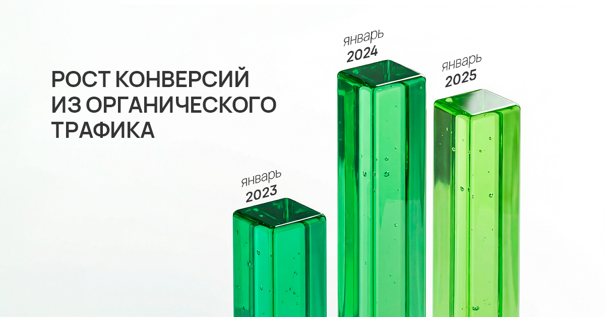 Конверсия из органического перехода в целевое действие «покупка» выросла в 2,4 раза с января 2023 года по январь 2024 года, с тех пор сохраняется на достигнутом уровне без проседаний.