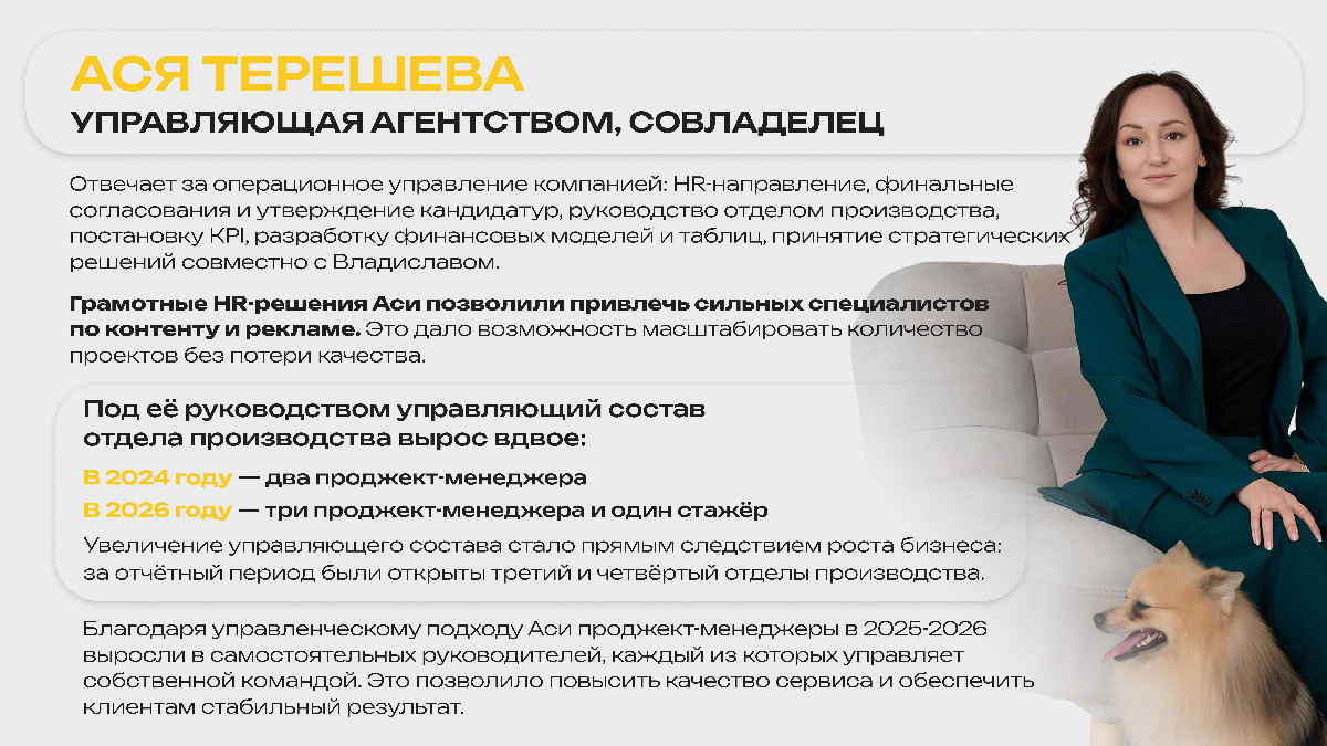 - На начало 2026 года — 44 проекта в работе, 25 сотрудников в штате