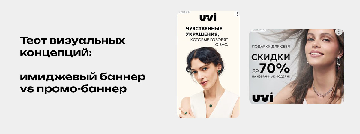 Этот результат показал важную особенность: для категории украшений значимую роль играет не только размер скидки, но и визуальный контекст. Более спокойная, эмоциональная подача и фокус на образе помогали лучше вовлекать аудиторию. В течение 6 месяцев оба креатива продолжали работать, а средний CTR подтвердил тенденцию: 0,41% у имиджевого баннера против 0,35% у промо-баннера со скидкой.