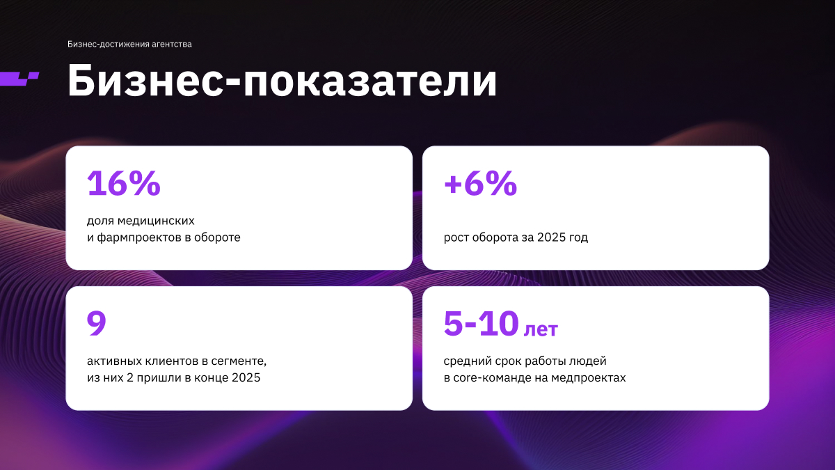 - Доля медицинских и фармацевтических проектов в обороте компании увеличилась до 16%