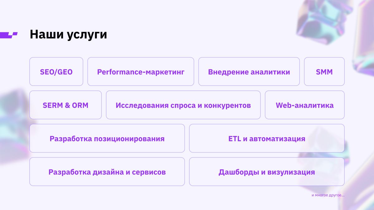 Работаем на стыке маркетинга, аналитики, дизайна и продуктовой разработки.