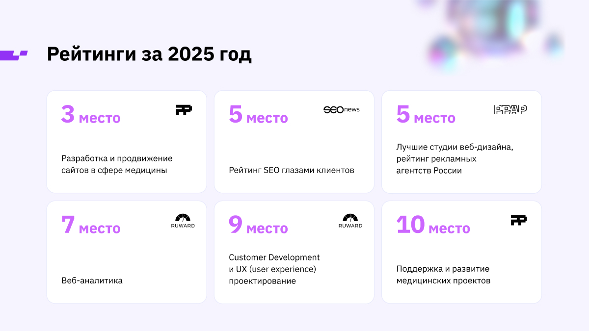 - 3 место — разработка и продвижение сайтов в сфере медицины и аптек, Рейтинг Рунета
