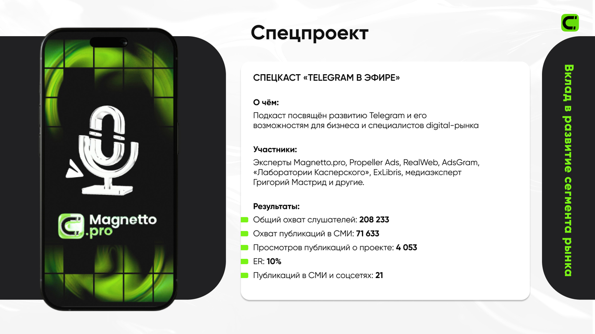 Проект позволил объединить экспертов рынка вокруг обсуждения будущего Telegram и расширить профессиональное сообщество специалистов, работающих с платформой.