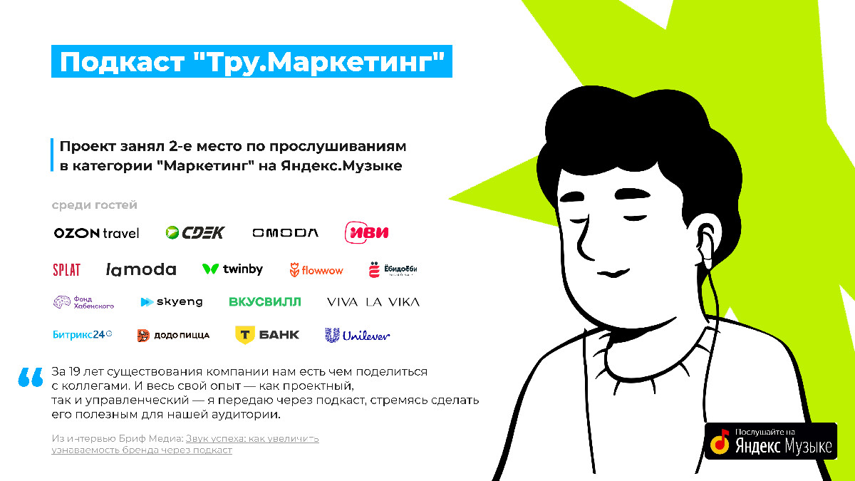 Мы все также продолжаем развивать наш подкаст Тру Маркетинг, в котором приглашаем директоров по маркетингу брендов для обсуждения актуальных вопросов и трендов в маркетинге. В каждом выпуске мы делимся практическими советами, обсуждаем успешные кейсы и реальные примеры. В 2025 году мы отметили ~более 50 выпусков, ~продолжая расширять аудиторию и делиться полезным опытом.