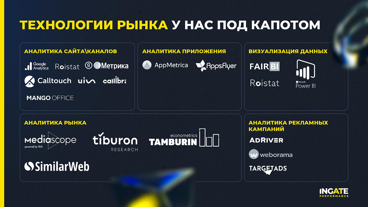 Мы в первую очередь стремимся понимать не рекламные каналы, а индустрии, в которых работают наши клиенты. Внутри Ingate собраны отраслевые команды, каждая из которых глубоко понимает специфику и экономику своего сегмента: FMCG, медицинские клиники, e-commerce, логистика, автомобили, банки, строительные материалы.