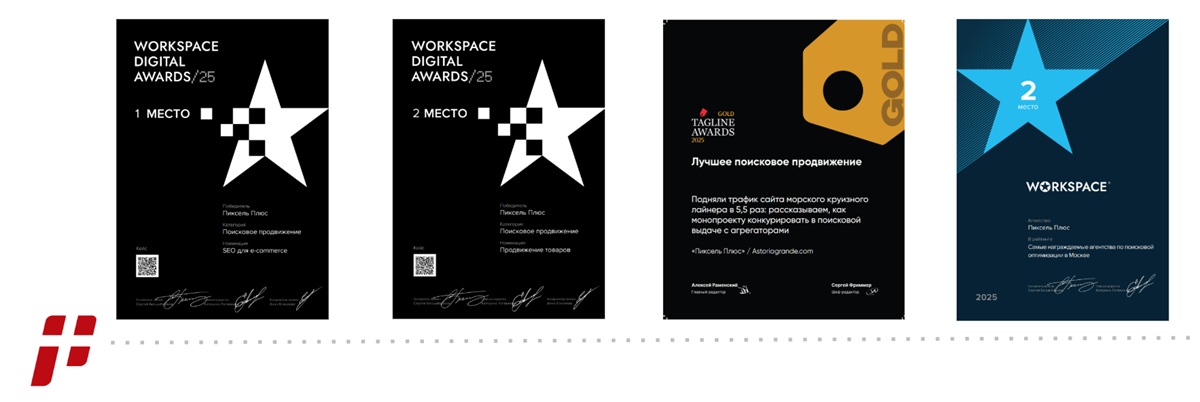Пиксель Плюс регулярно входит в профессиональные рейтинги и получает награды отраслевых премий, включая: