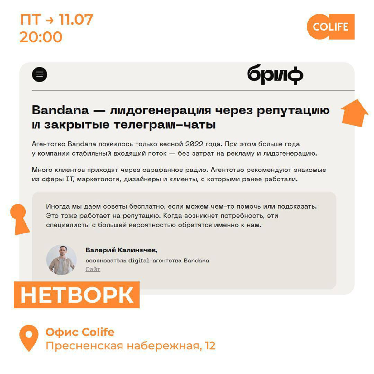 • Провели лекцию в CoLife "Как получать клиентов без поиска: входящий поток с нуля" (в июле 2025)