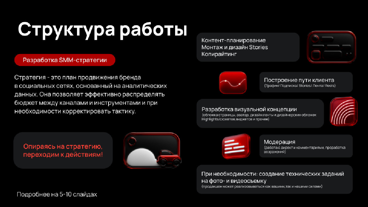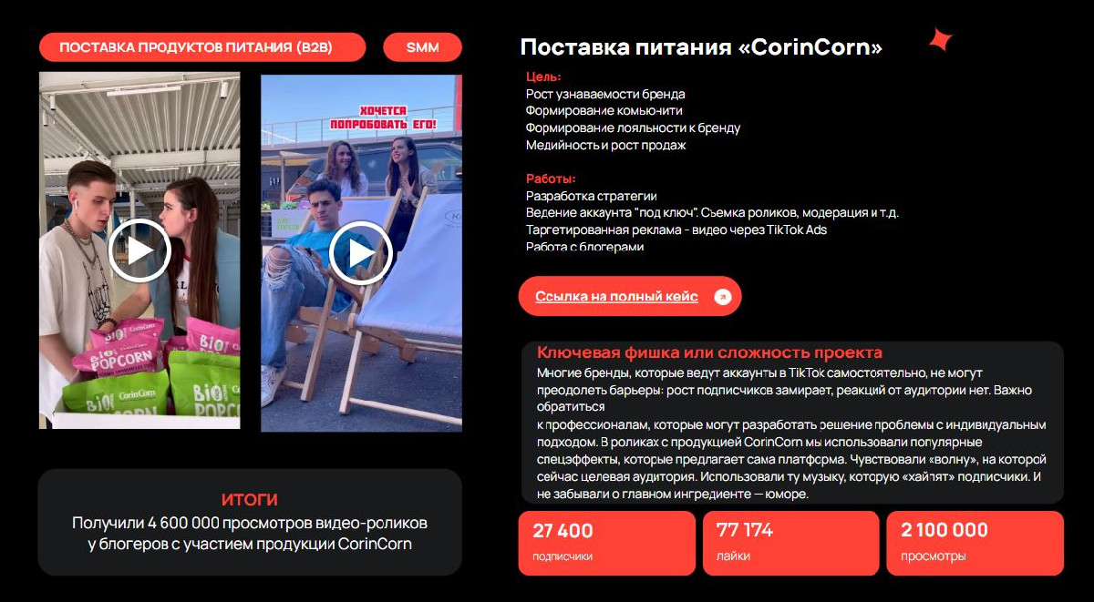 - расширение команды и экспертизы (SMM + инфлюенс + продакшн + аналитика)