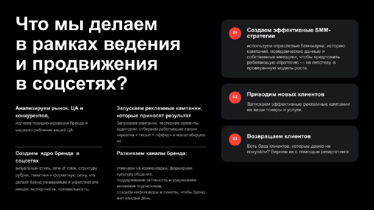 - Системность: мы строим SMM как часть единой диджитал-экосистемы