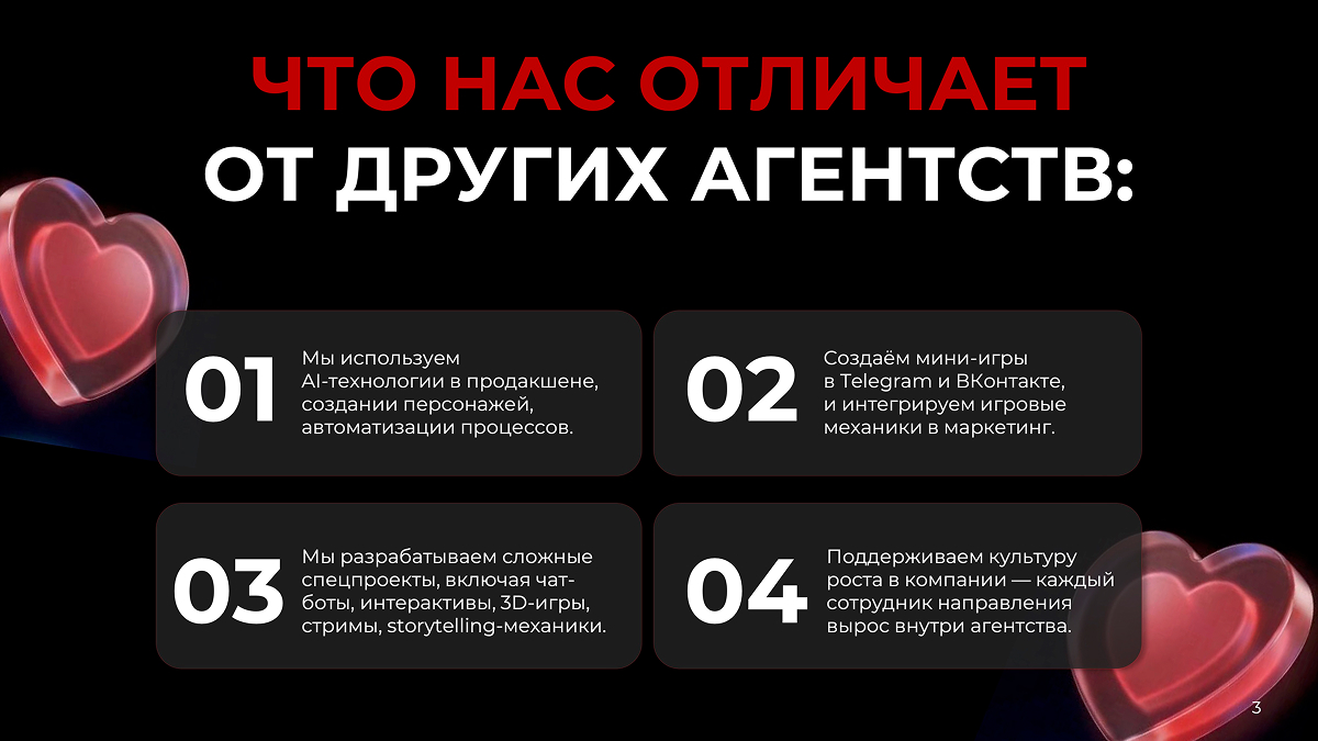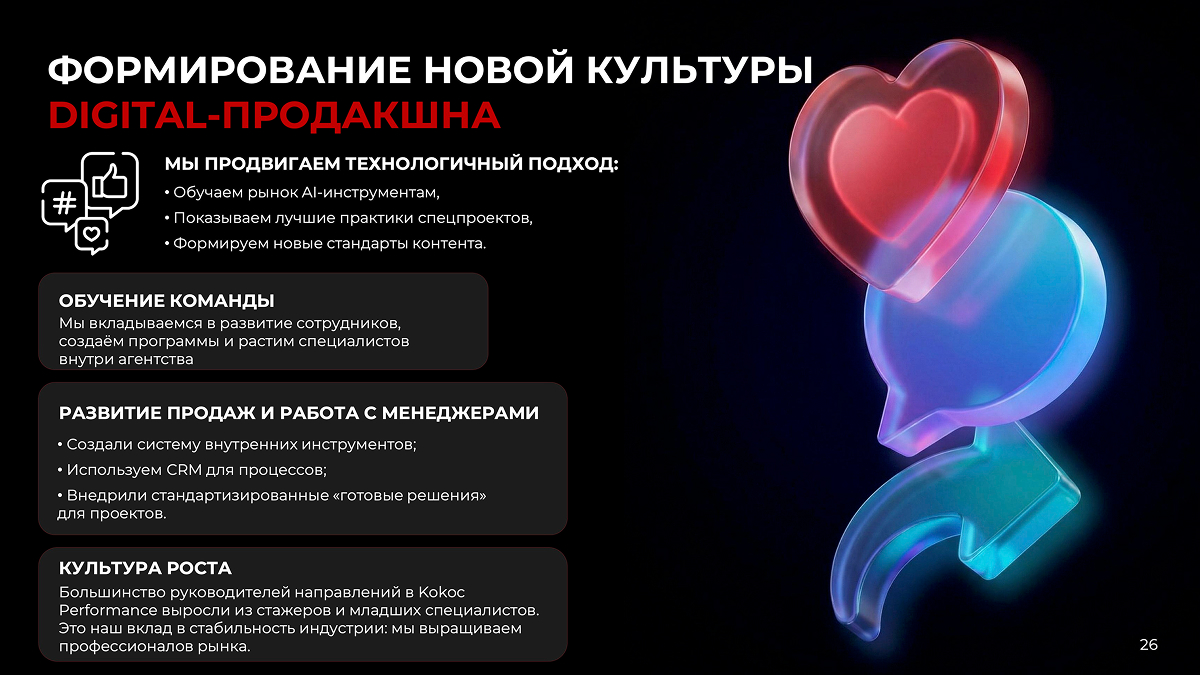- Мы делаем ставку на инновации: AI-технологии, мини-игры, сложные спецпроекты, автоматизацию, мультимедийные форматы.