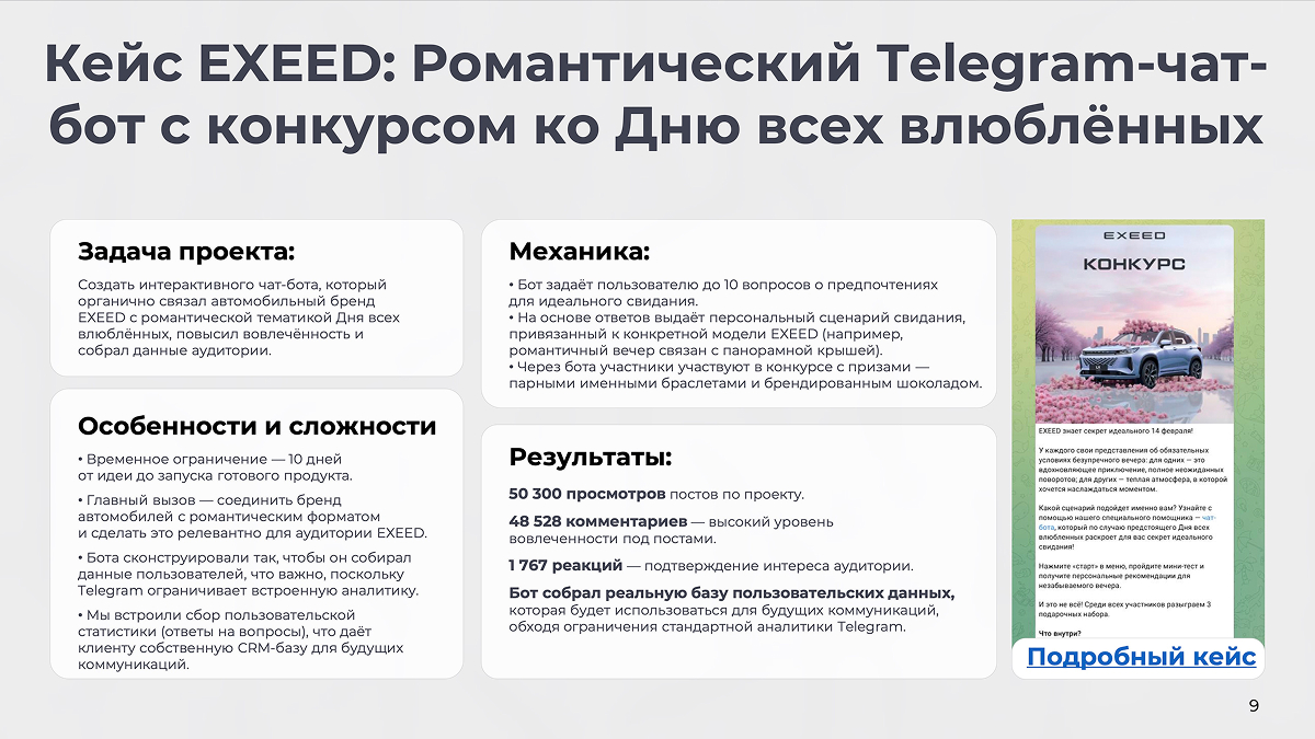5.2. Кейc EXEED: Романтический Telegram-чат-бот с конкурсом ко Дню всех влюблённых