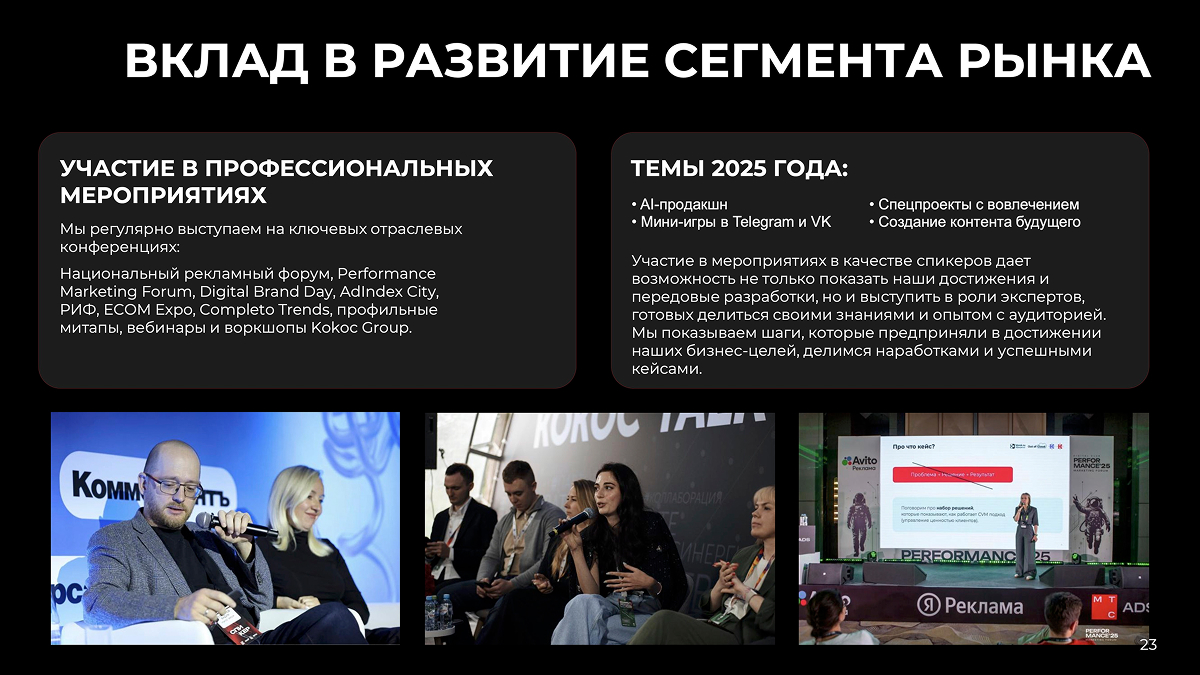 Национальный рекламный форум, Performance Marketing Forum, Digital Brand Day, AdIndex City, РИФ, ECOM Expo, Completo Trends, профильные митапы, вебинары и воркшопы Kokoc Group.