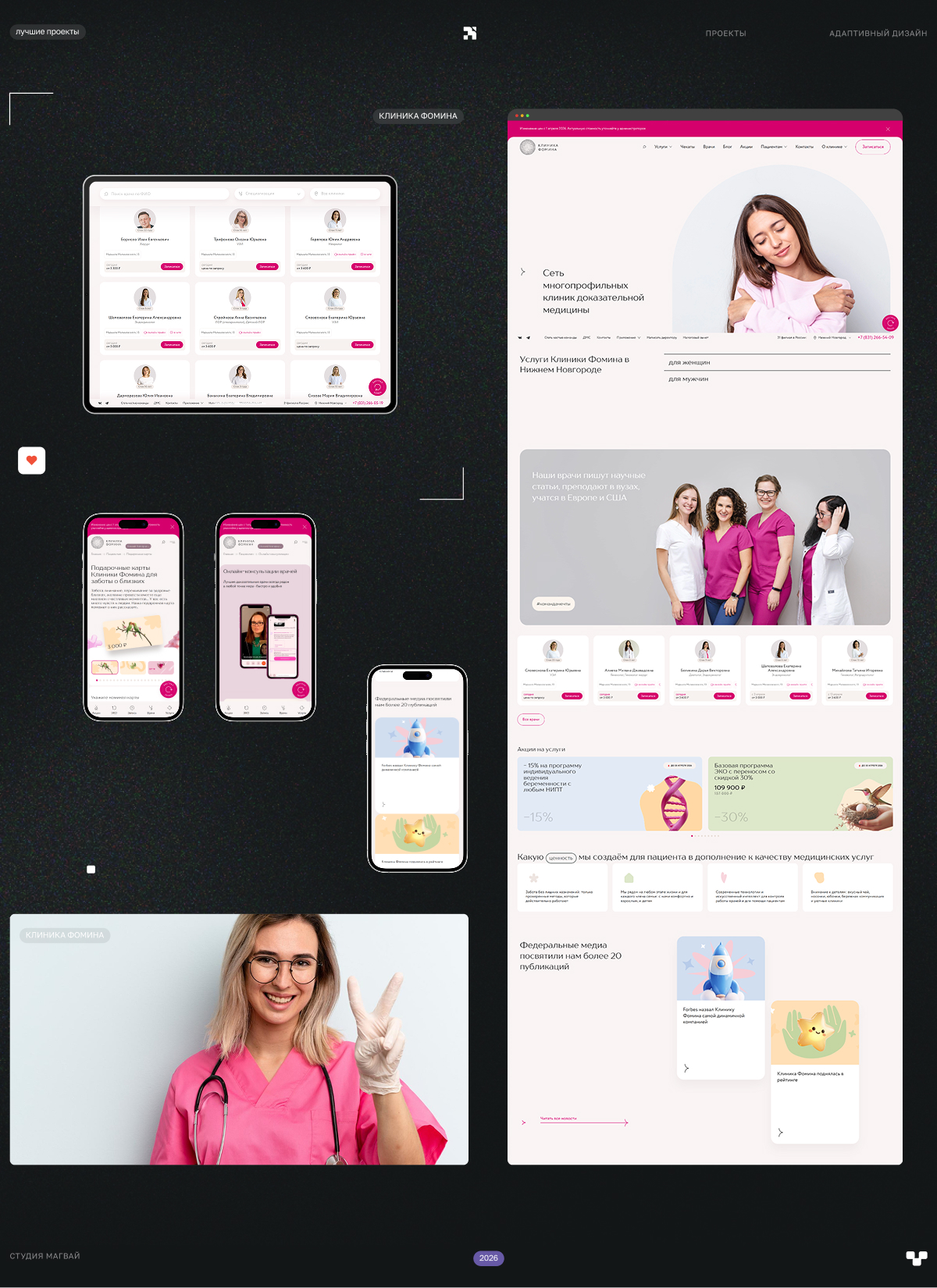 В 2025 году мы получили 11 новых наград, среди которых — награда за лучший медицинский сайт России для проекта «Клиника доктора Фомина».
