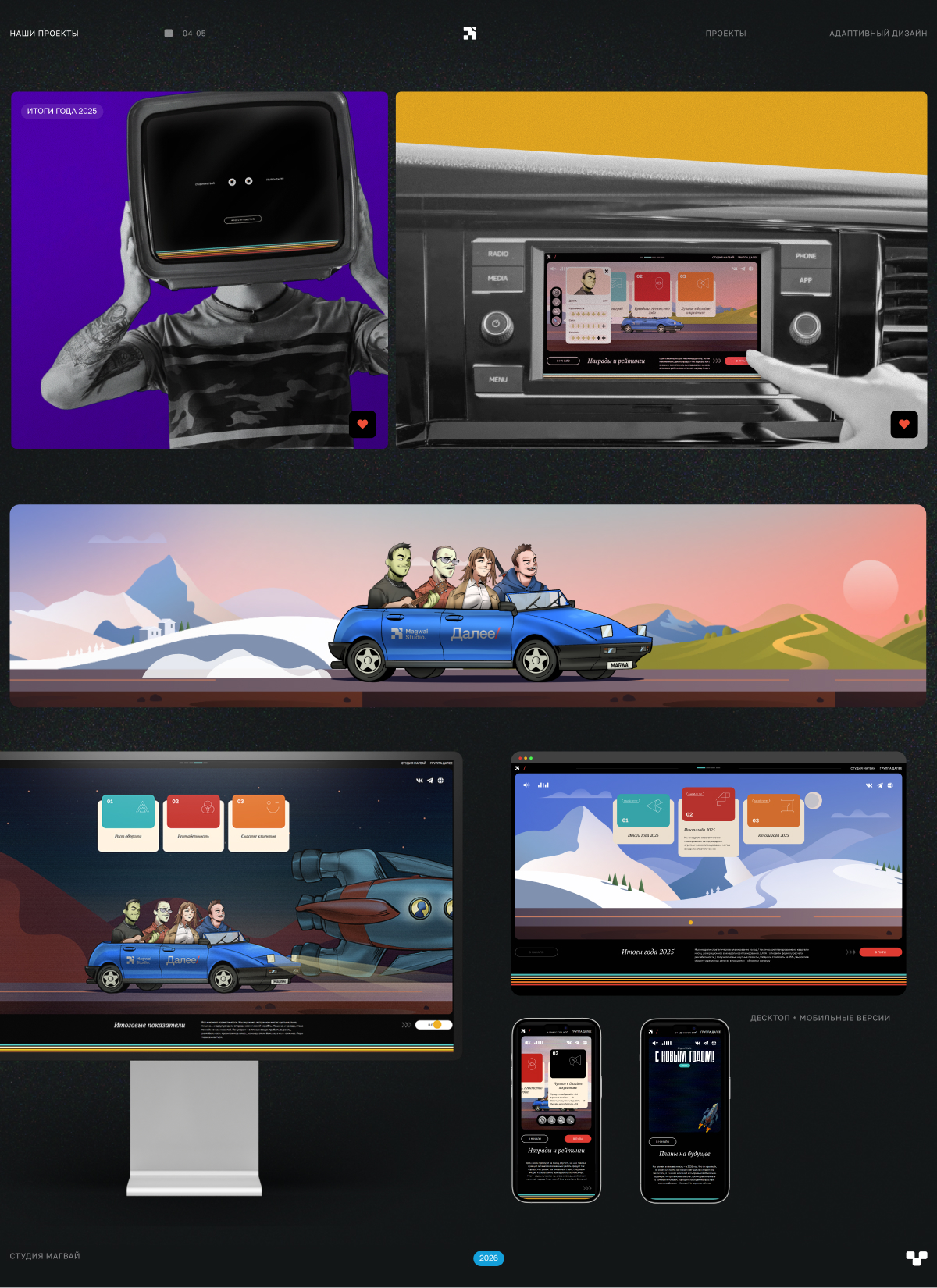 Эти проекты были отмечены на конкурсах и премиях, но для нас их ценность не только в этом. Каждый из них — пример того, как дизайн может быть не декоративным приложением, а самостоятельной силой: объяснять, впечатлять, вести, вовлекать, продавать.