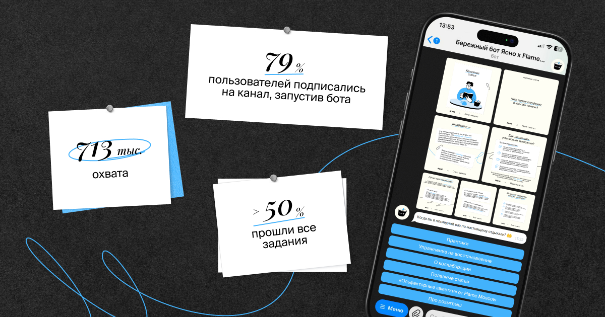 Продвижение шло через телеграм-каналы: крупные — для охвата, нишевые — для вовлечения. В результате бот стал не просто промоинструментом, а полноценной digital-практикой в рамках коллаборации.