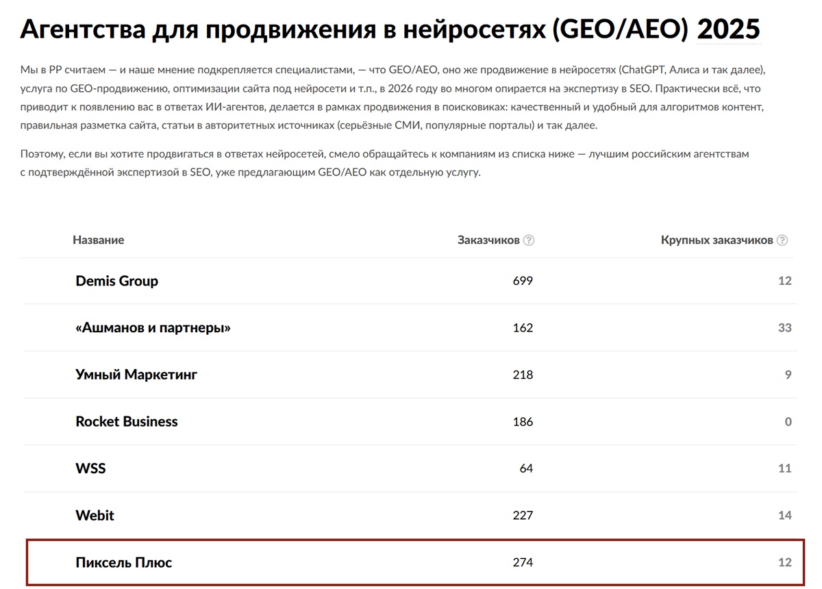 В 2025 году Пиксель Плюс принял активное участие в развитии рынка SEO и интернет-маркетинга.