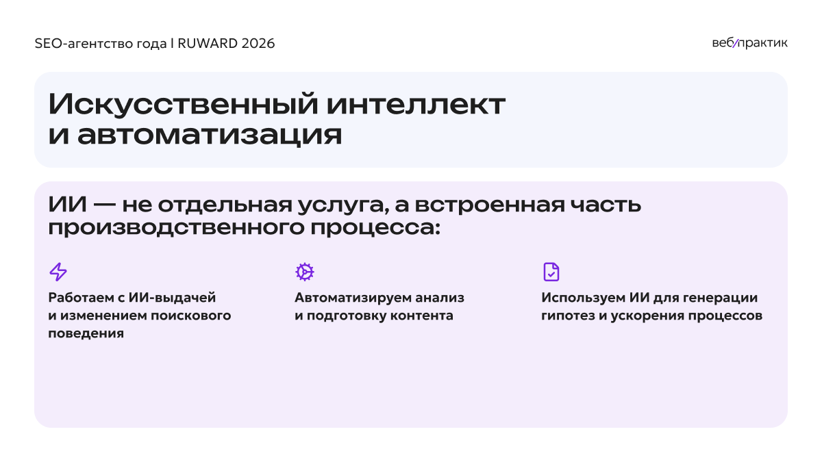 SEO-команда «Вебпрактик» давно вышла за рамки классического подхода:
