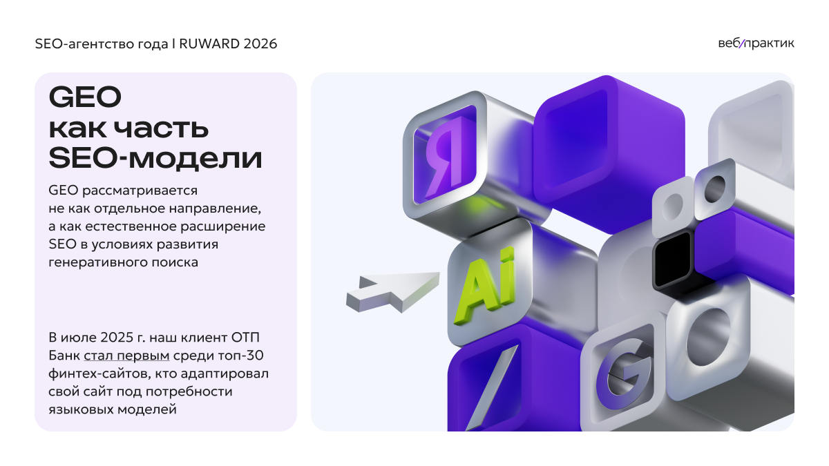 В 2025 году «Вебпрактик» начал системно встраивать подходы GEO в существующие SEO-стратегии: