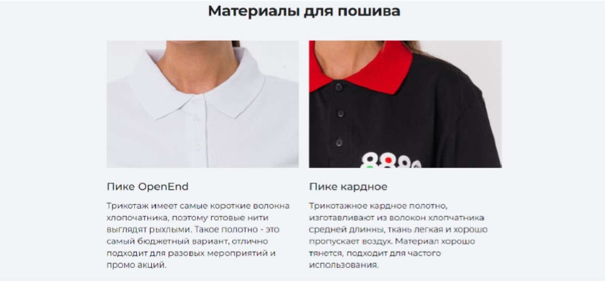 Также была доработана структура посадочных страниц, были добавлены такие блоки как: цена, этапы сотрудничества и материалы для пошива.