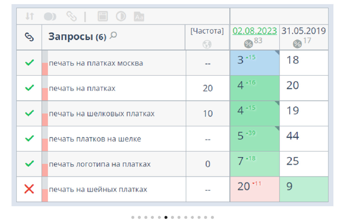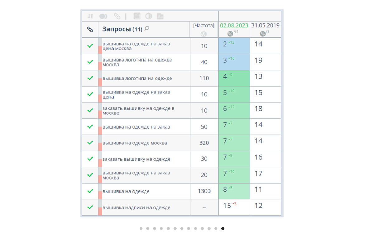 За время продвижения нам удалось вывести в ТОП не только приоритетные запросы по пошиву, но брендированию (печать и вышивка).