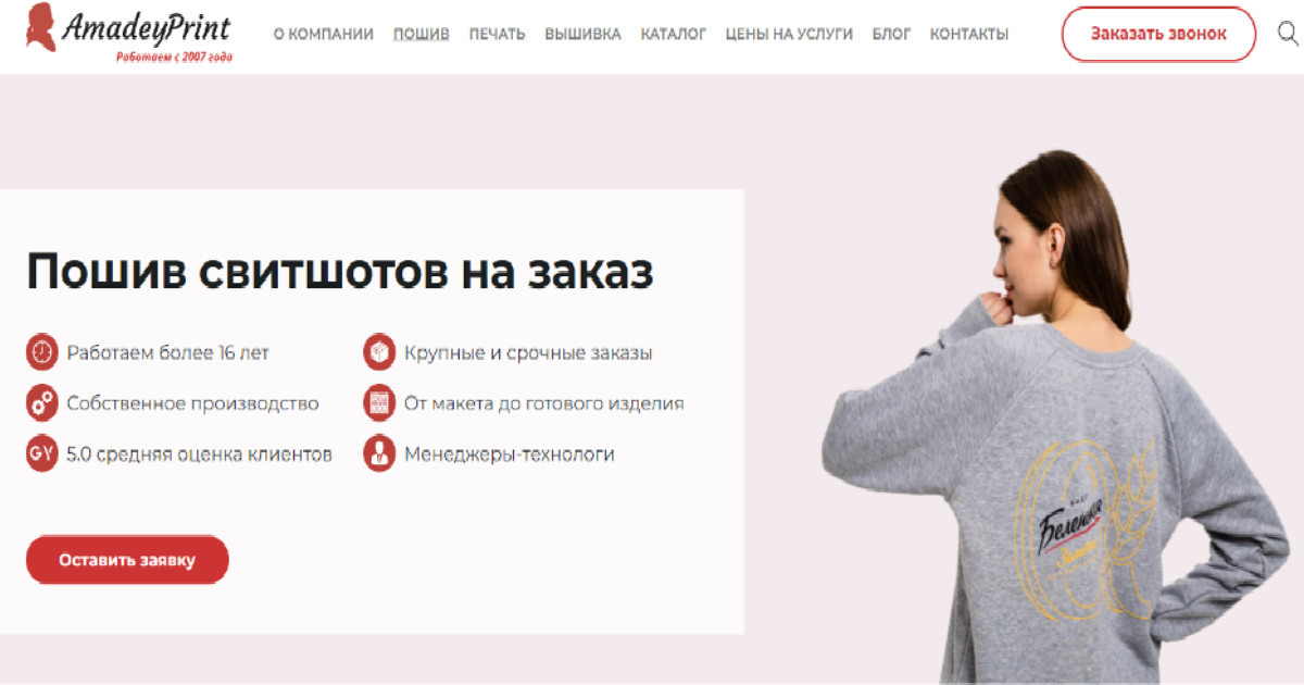 Компания «Amadey Print» является производителем брендированной одежды с 2007 года. Основной задачей проекта являлось улучшение позиций сайта и привлечение трафика по необходимым запросам, с целью получения заказов на пошив и брендирование одежды и аксессуаров.