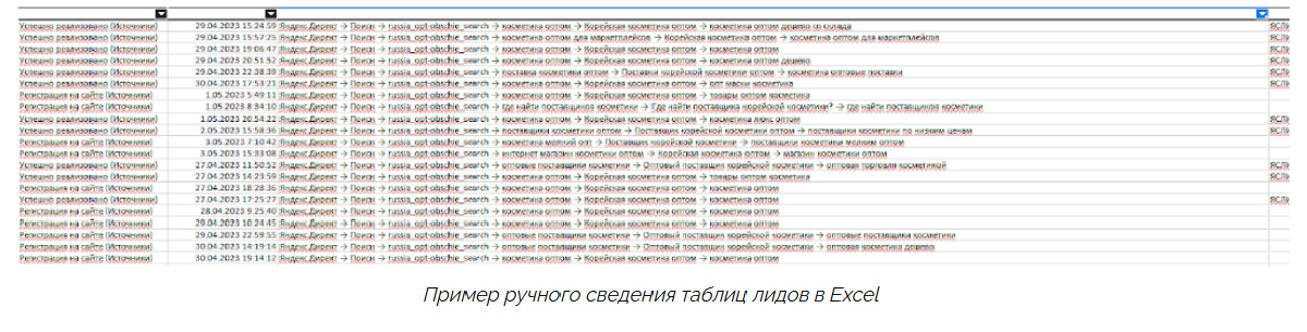 Пример ручного сведения таблиц лидов в Excel