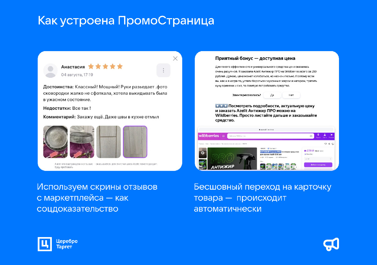 Обязательно используем качественные фотографии в процессе использования средства. Вставляем скрины из карточки товара — с отзывами, свойствами товара. Все это работает как социальное доказательство — не только автор статьи доволен, но и множество других людей.