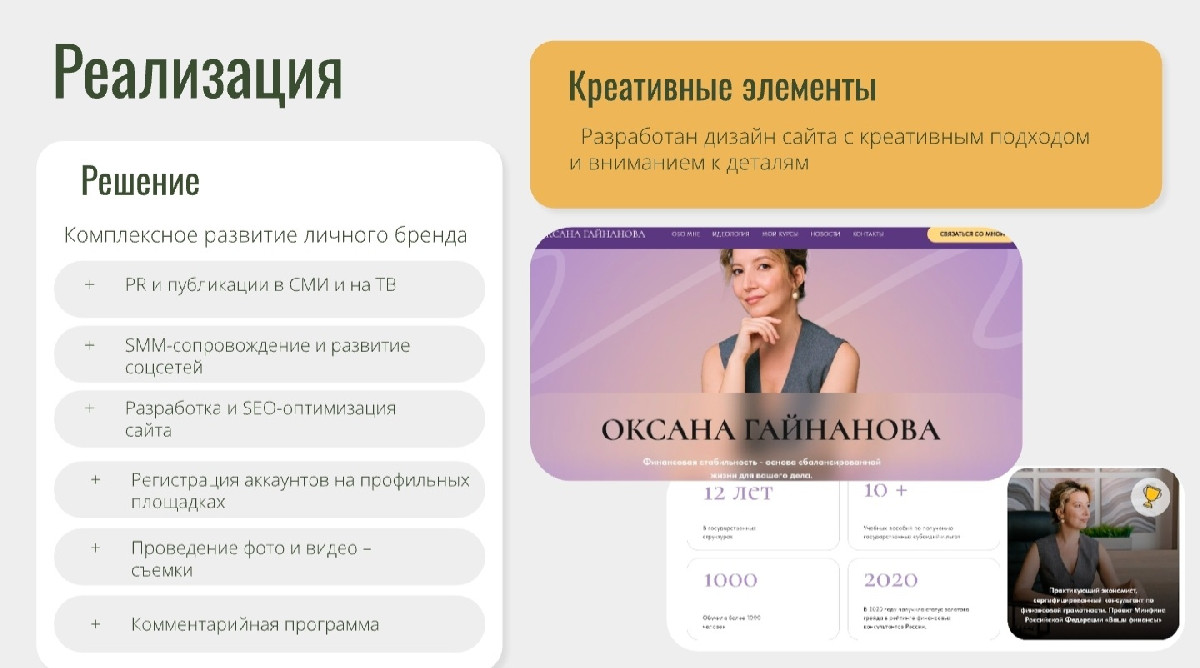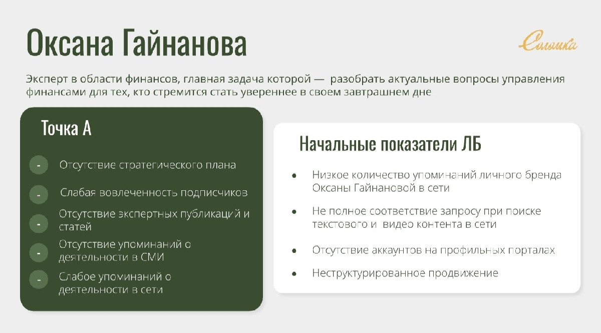 Несмотря на солидный профессиональный опыт, цифровое и медийное присутствие Оксаны было слабым и неструктурированным: