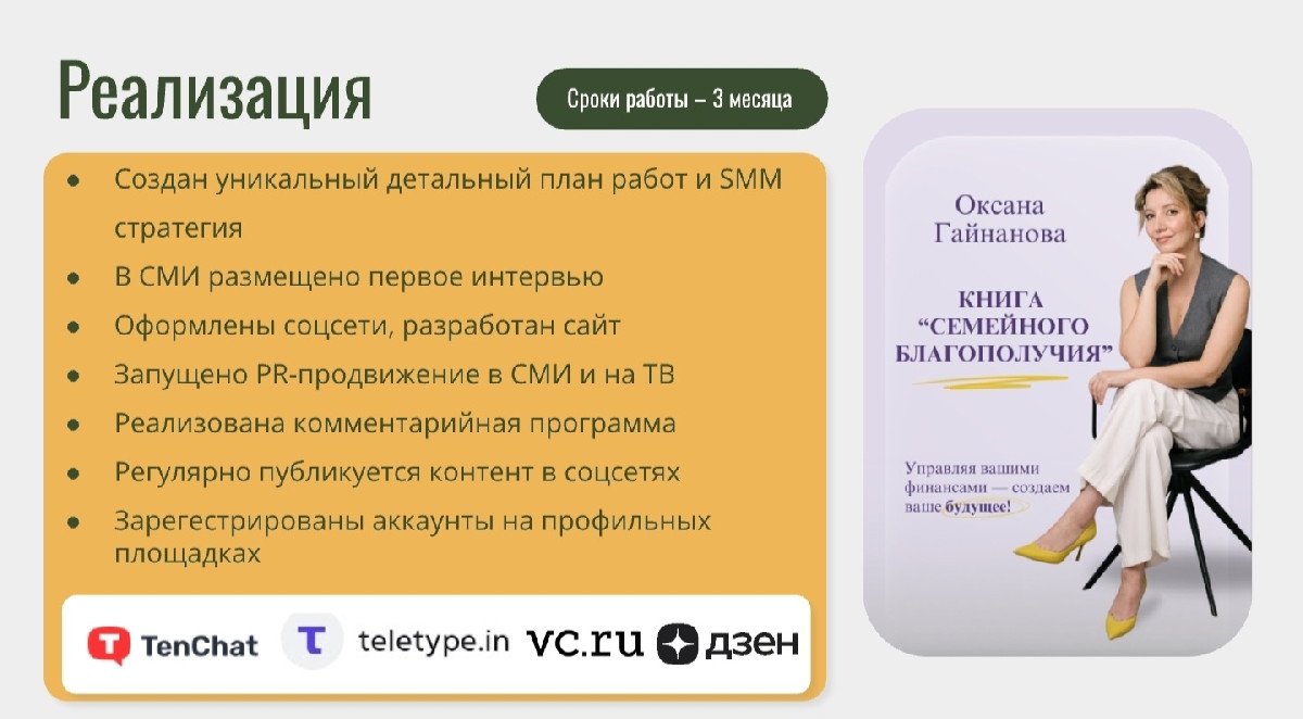 Упоминание книги «Семейного благополучия»: в медиакоммуникациях была интегрирована информация о книге Оксаны, что дополнительно укрепило ее позицию как автора и системного эксперта.