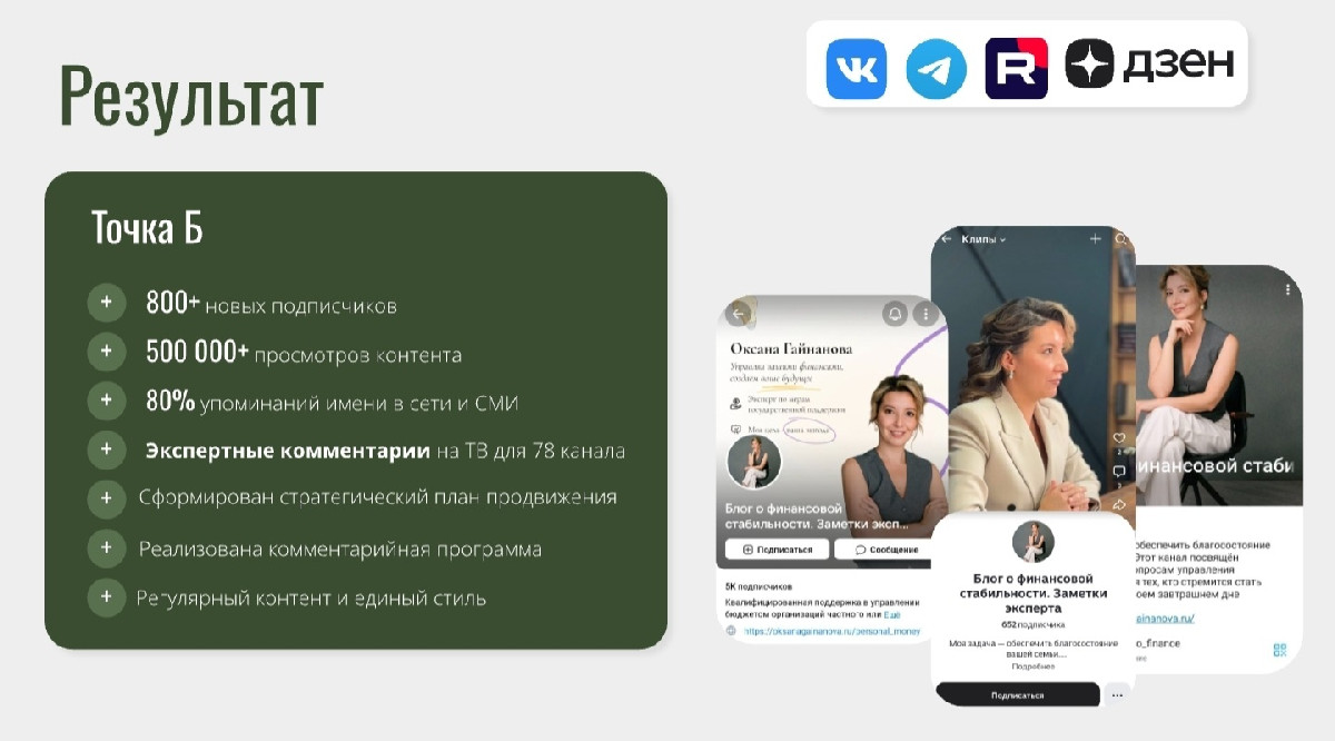 История Оксаны Гайнановой — это пример того, как можно трансформировать разрозненное цифровое присутствие в целостную стратегию, закрепляющую статус эксперта-практика, укрепляющую медиаавторитет и обеспечивающую стабильный приток заинтересованной аудитории.