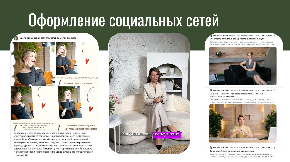 Приведение к единому стилю социальных сетей: оформлены и приведены к единому визуальному и стилистическому коду профили в ключевых социальных сетях, что усилило узнаваемость и воспринимаемую экспертизу.