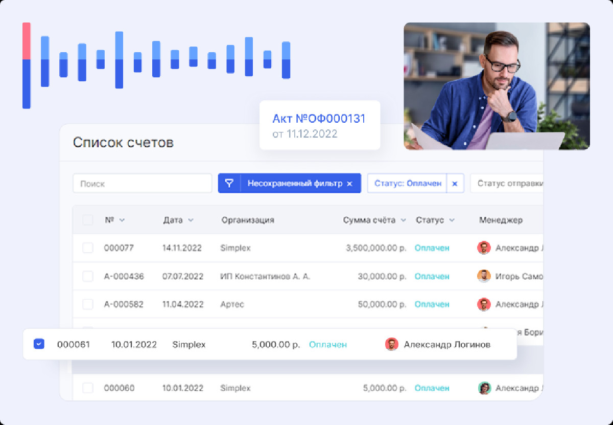 Финансовый модуль внедрили для сопровождения этапных оплат. Счета формируются автоматически на основе данных сделки.