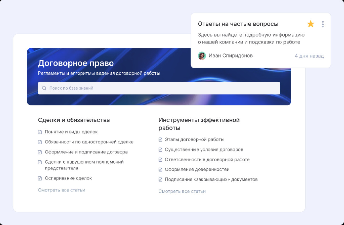 Параллельно компания начала формировать базу знаний судебные кейсы, шаблоны документов и методические материалы. Это ускоряет обучение новых сотрудников и снижает нагрузку на руководителя.