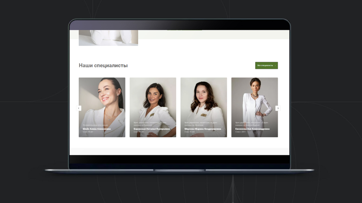 Пример реализованного блока на страницах услуг - блок “Наши специалисты”