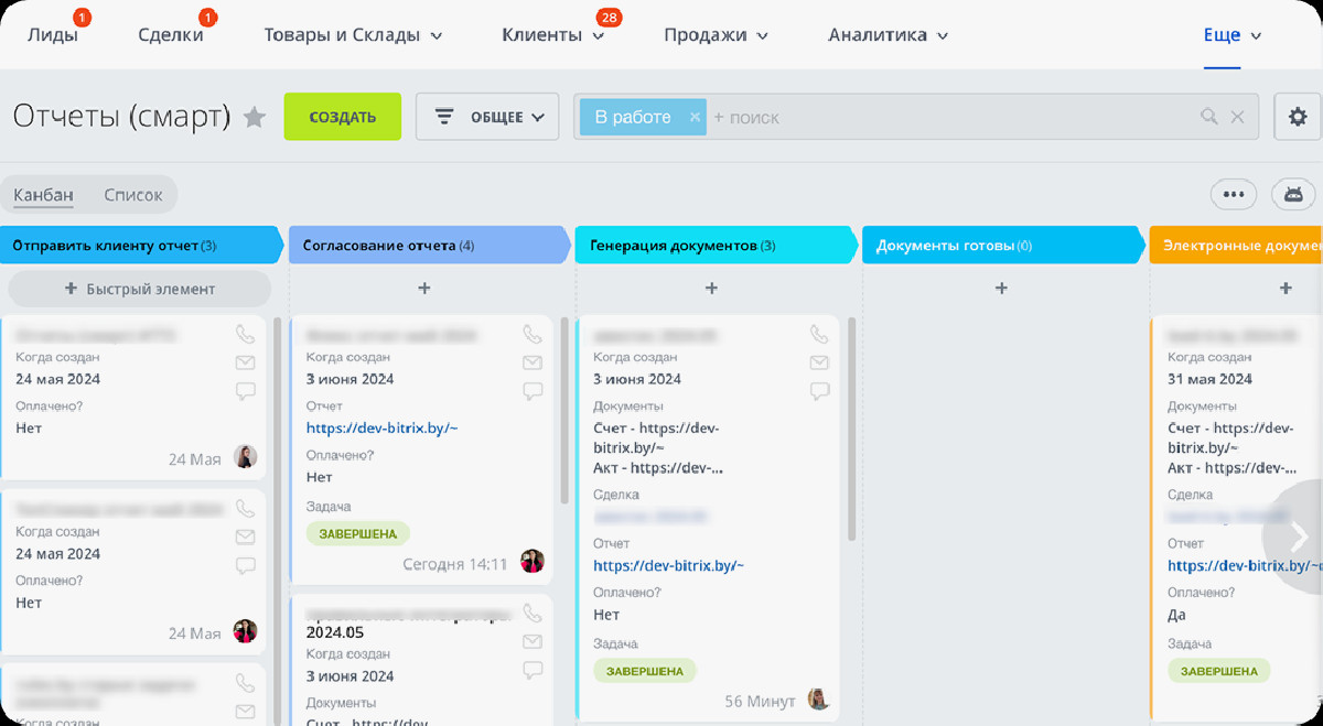 Для решения проблем была разработана новая система — Отчеты v2 на базе канбана и смарт-процессов CRM.