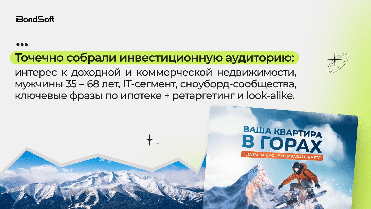 С этой логикой мы запускали продвижение жилого комплекса рядом с Архыз с чеком от 15 млн ₽