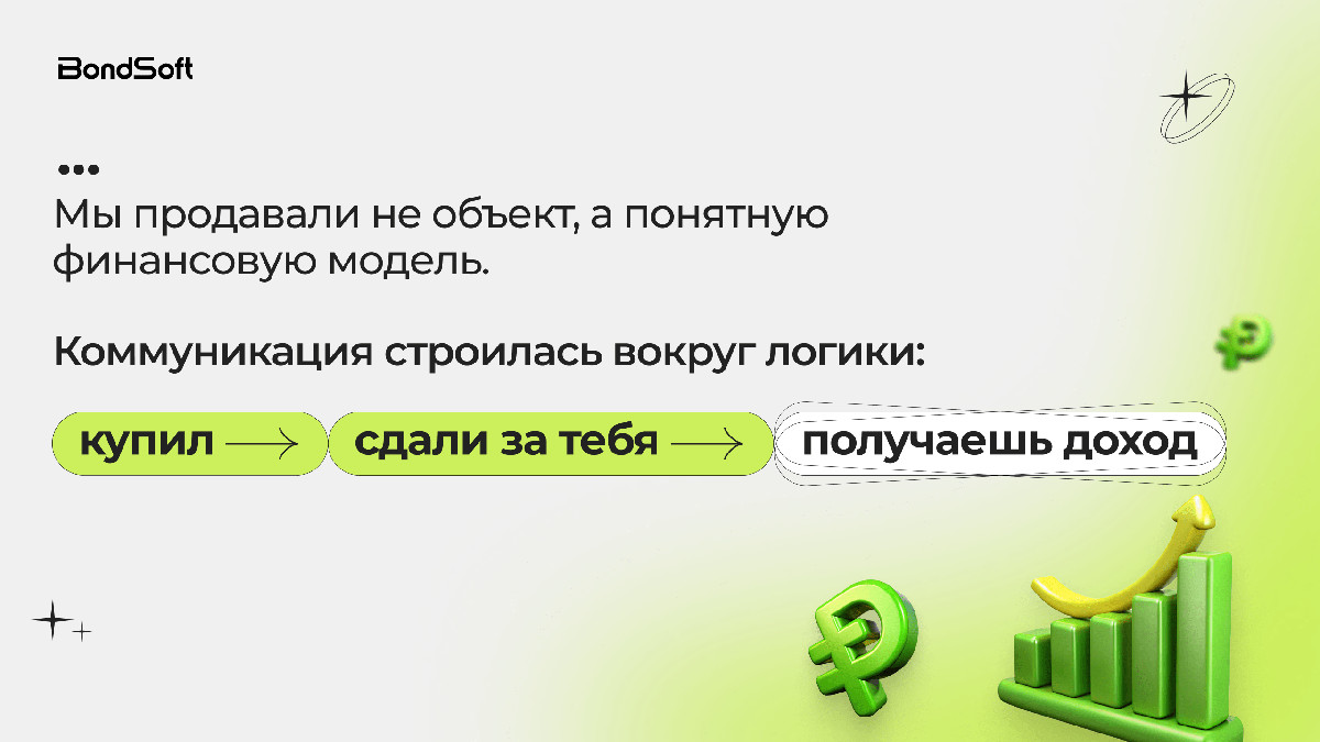Каждое объявление работало как мини-презентация инвестиционной модели. Реклама сразу фильтровала аудиторию.