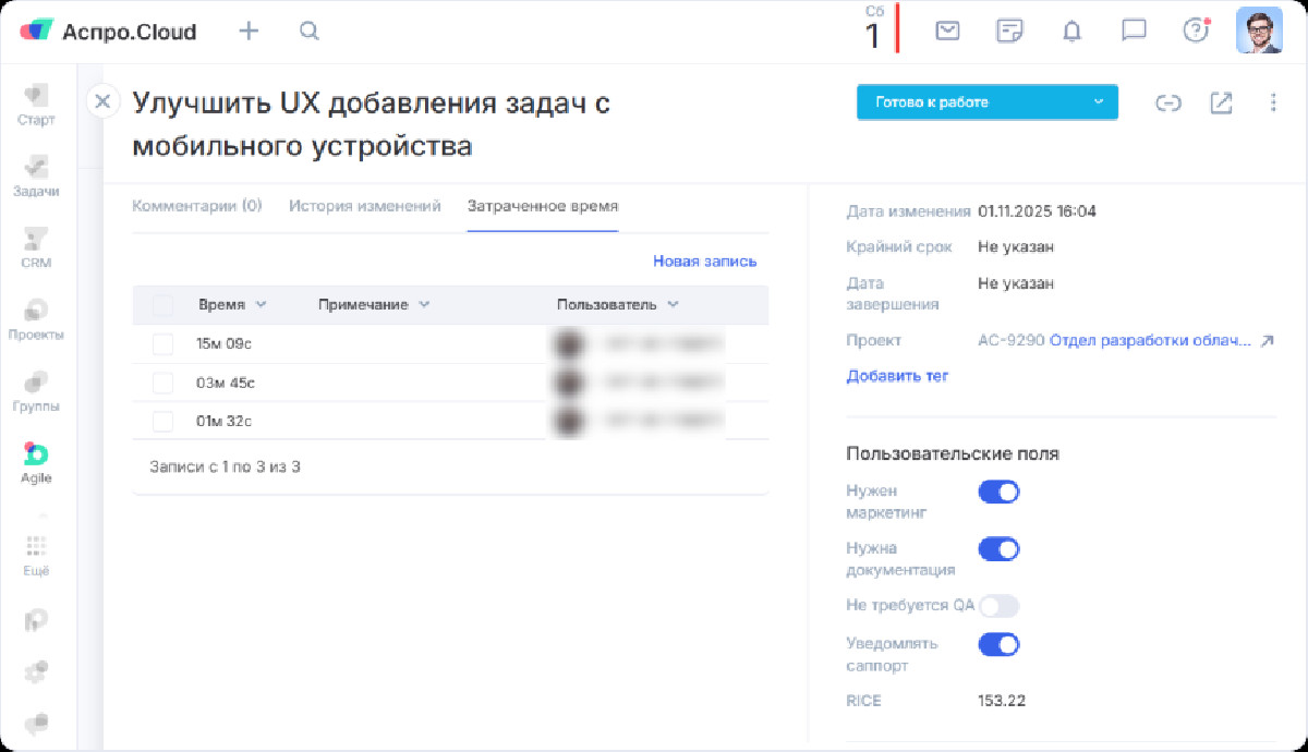 Настроили триггерные поля для уведомления смежных отделов. Это снизило ручные коммуникации.