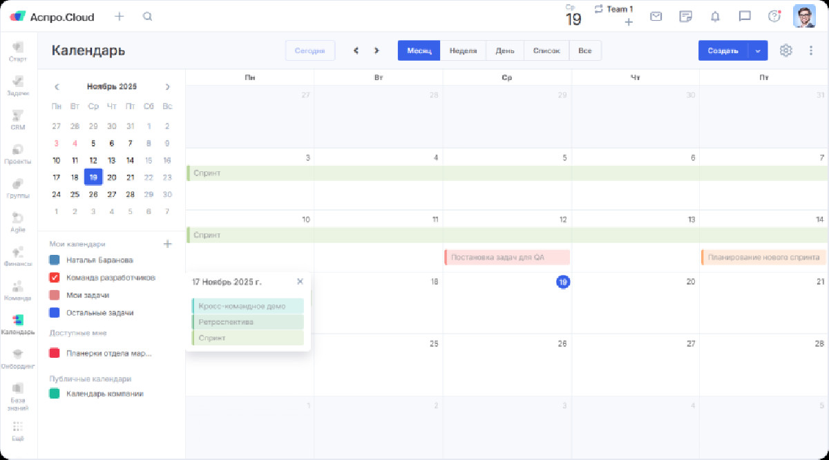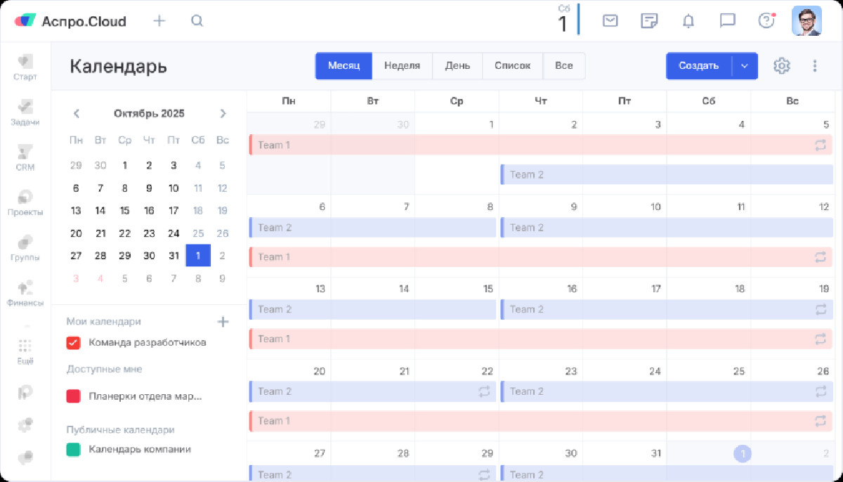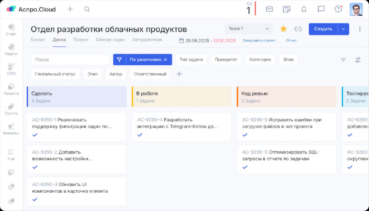 Аспро.Cloud активно развивается как продукт для управления бизнесом. В разработке задействованы шесть команд.