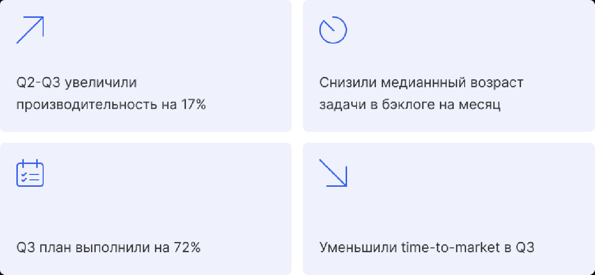 Результат достигнут за счет управленческой трансформации, а не увеличения ресурсов. Синхронизация спринтов, строгая подготовка задач и количественная приоритизация позволили ускорить разработку и повысить эффективность команды.