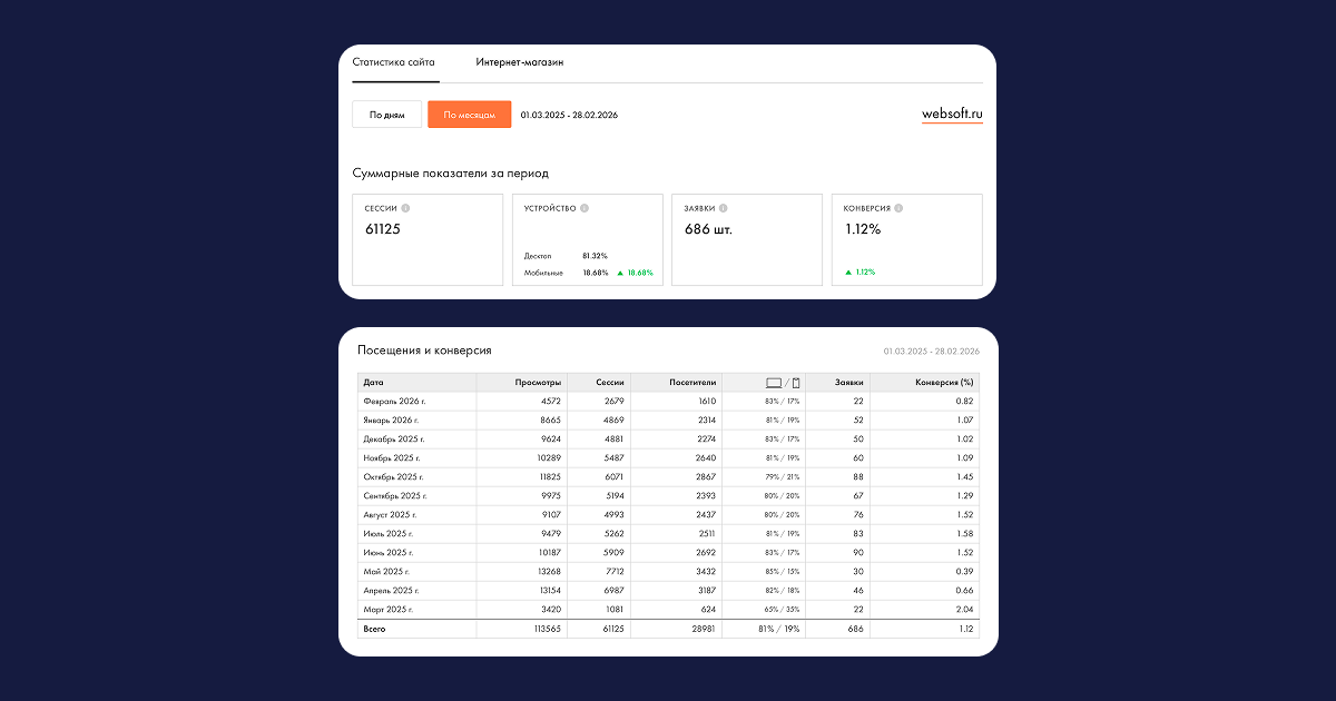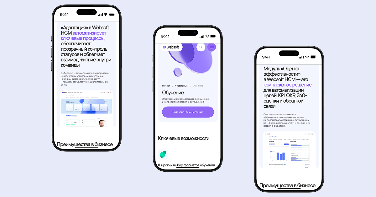 - Сайт помогает позиционировать Websoft как технологичного лидера рынка HR Tech.